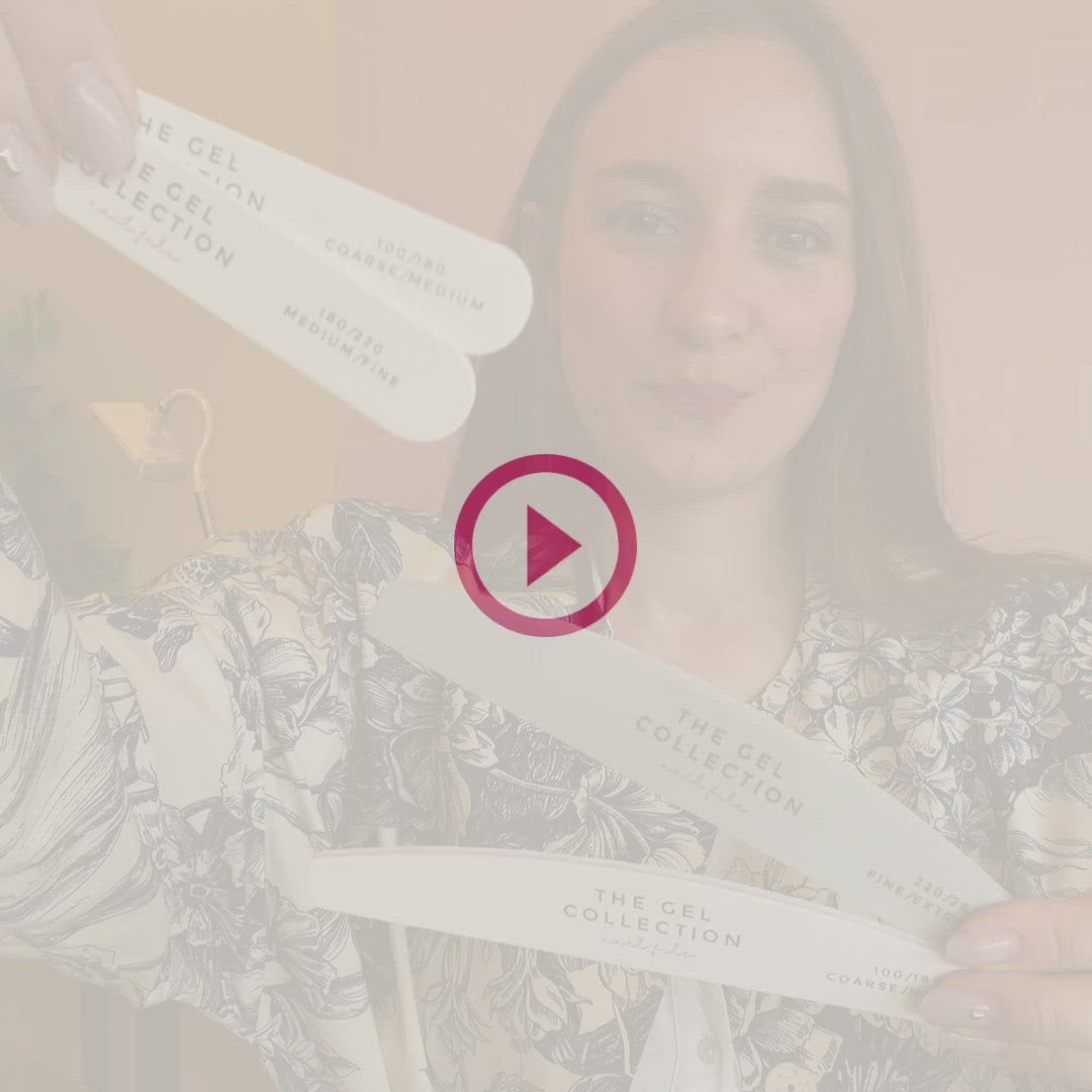 For at give dig fleksibilitet i dit filearbejde, tilbyder filen to forskellige grovheder; nemlig grit 100 (grov) og grit 180 (medium). Grit 100 er god til f.eks. at forme hårde produkter såsom Builder Gel og Polygel. Grit 180 er god til at finjustere formen på hårde produkter eller aftage bløde produkter såsom Gel Polish.